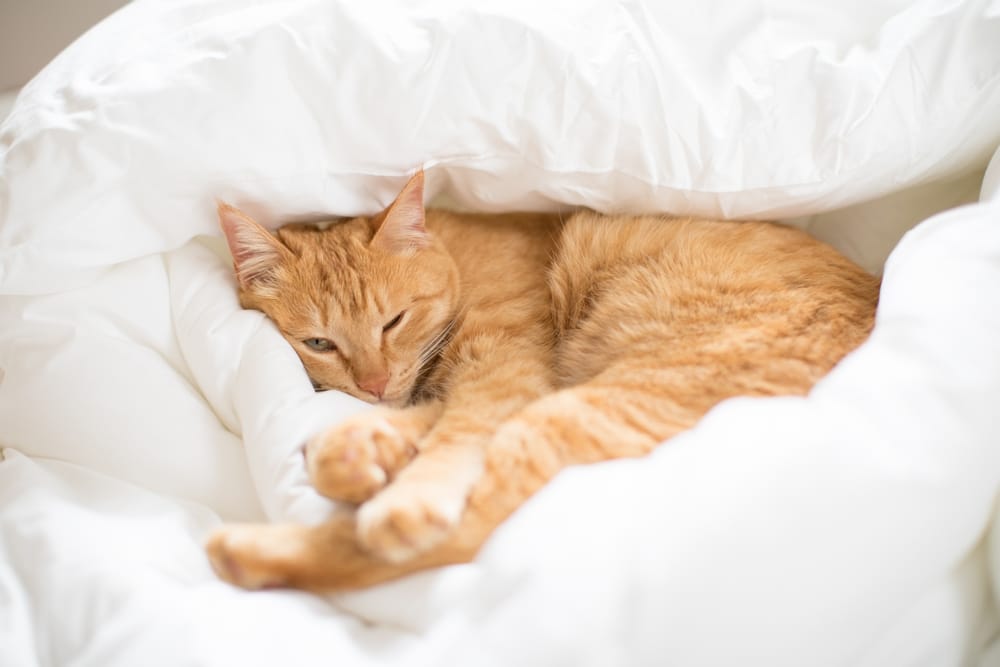 Your scent is everywhere on your bed, and cats find it grounding. Smelling you makes them feel secure and helps them relax more quickly.
