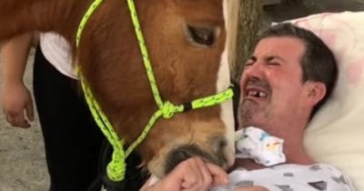 Man breaks down completely during unforgettable visit from a gentle horse